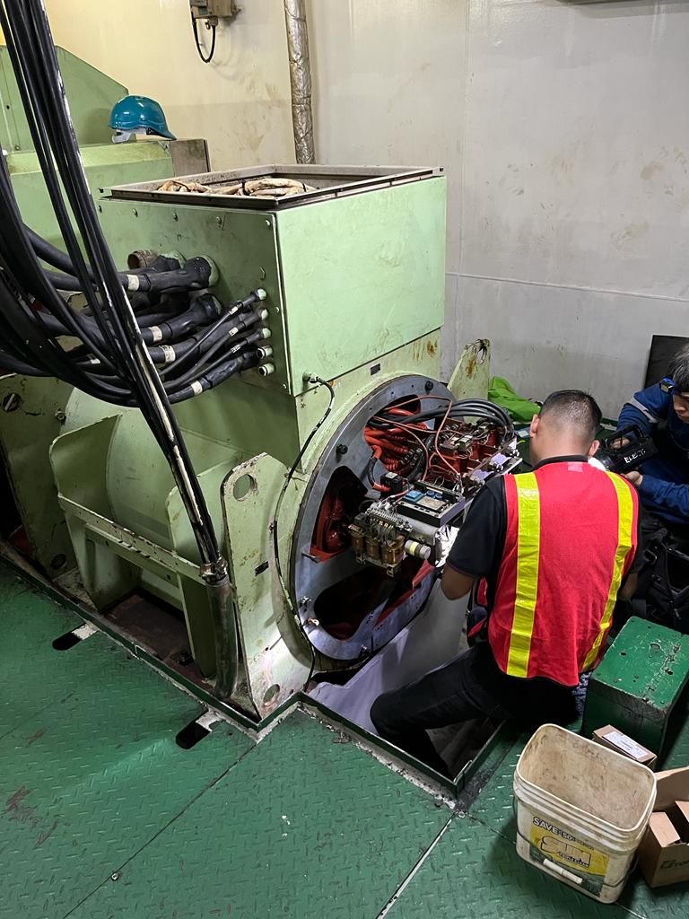 We have a wide range of skills in this department to service the needs of the marine industry. Rewinding of Motors and generators, Overhaul of Motors and generators, Balancing of rotors and impellors, Re-sleeving and machining of motor end shields and bearing journals, General installation work (i.e. running of cables, fitting units and multi cable transits), Shore supply and generator hire, Cleaning of Switchboards, Supply of personnel for Off Port Limits and riding crew work, Repairs to cranes & davits and other lifting equipment, Fault finding and repair mooring winches & capstans.